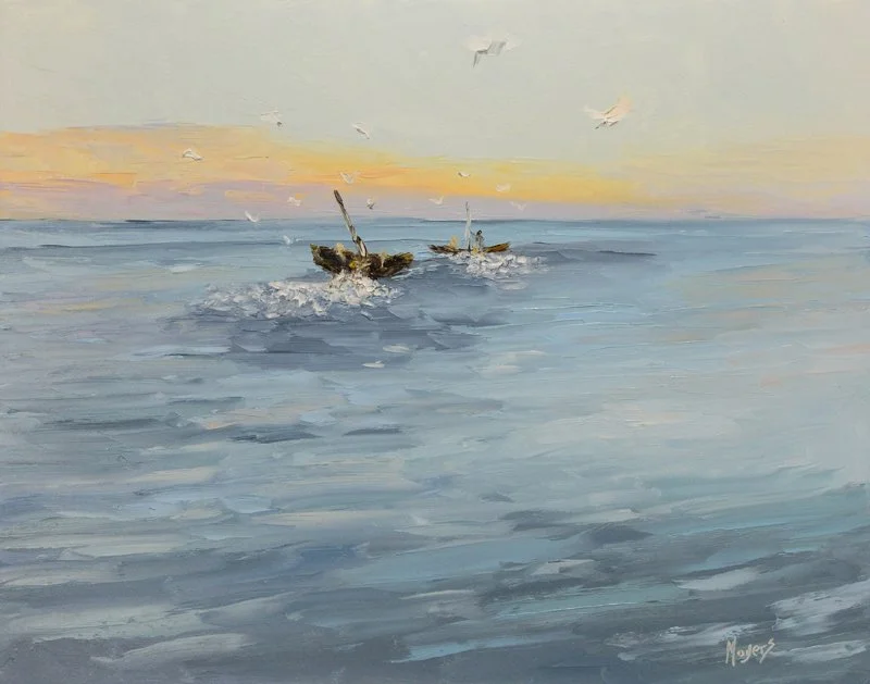 On one occasion, while the crowd was pressing in on him to hear the word of God, he was standing by the lake of Gennesaret, and he saw two boats by the lake, but the fishermen had gone out of them and were washing their nets. Getting into one of the boats, which was Simon's, he asked him to put out a little from the land. And he sat down and taught the people from the boat. And when he had finished speaking, he said to Simon, “Put out into the deep and let down your nets for a catch.” And Simon answered, “Master, we toiled all night and took nothing! But at your word I will let down the nets.” And when they had done this, they enclosed a large number of fish, and their nets were breaking. They signaled to their partners in the other boat to come and help them. And they came and filled both the boats, so that they began to sink. But when Simon Peter saw it, he fell down at Jesus' knees, saying, “Depart from me, for I am a sinful man, O Lord.” For he and all who were with him were astonished at the catch of fish that they had taken, and so also were James and John, sons of Zebedee, who were partners with Simon. And Jesus said to Simon, “Do not be afraid; from now on you will be catching men.” And when they had brought their boats to land, they left everything and followed him.